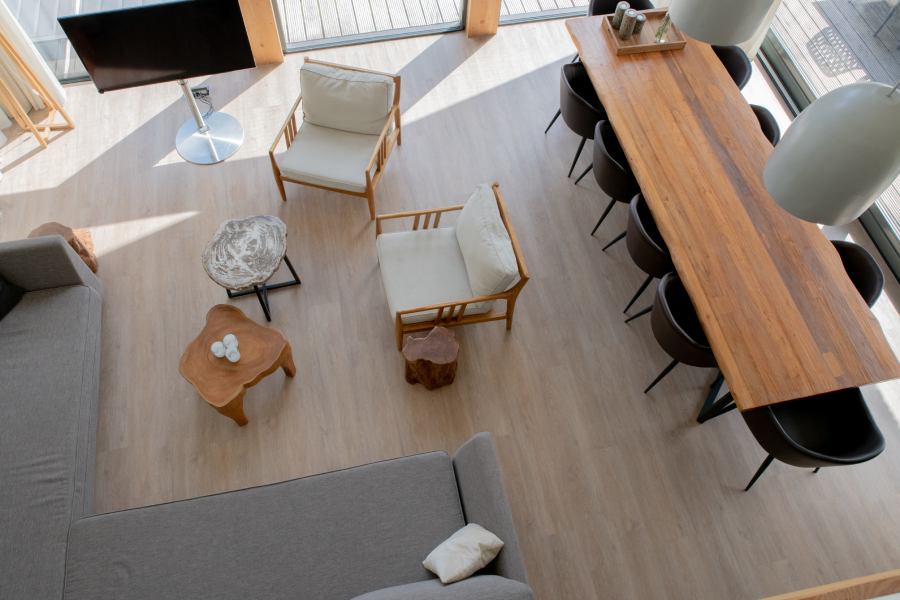Gerade für viel genutzte Räume im Haus eignet sich dieser Bodenbelag, denn ein Vinylboden, auch bekannt unter den Begriffen Designboden, Designbelag oder auch nur Vinyl, ist unkompliziert zu reinigen und zudem sehr robust. Design-Vinyl ist ein fantastisches Material für Bodenbeläge, vor allem wenn es um Nachhaltigkeit geht. Vivafloors Böden haben das Indoor Air Comfort Gold-Zertifikat, sind phthalatfrei und zu 100% recycelbar.
